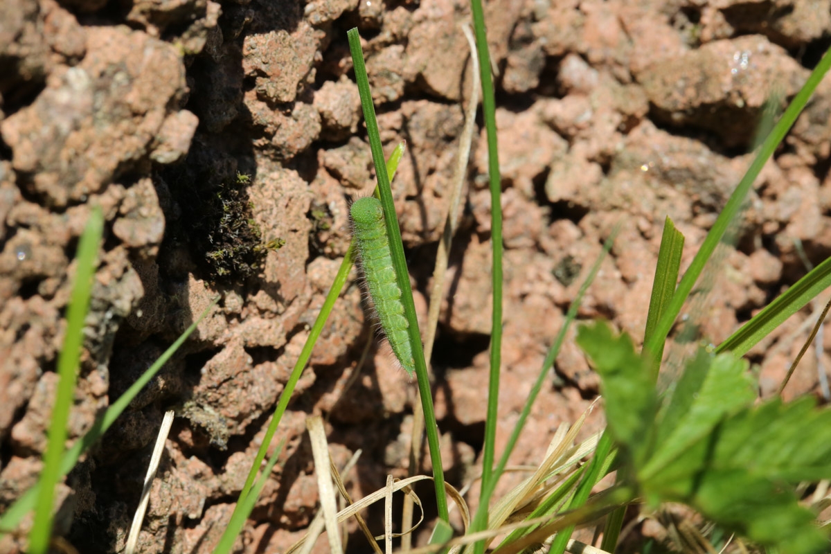 Raupe des Braunauges (Lasiommata maera) im letzten Kleid.
