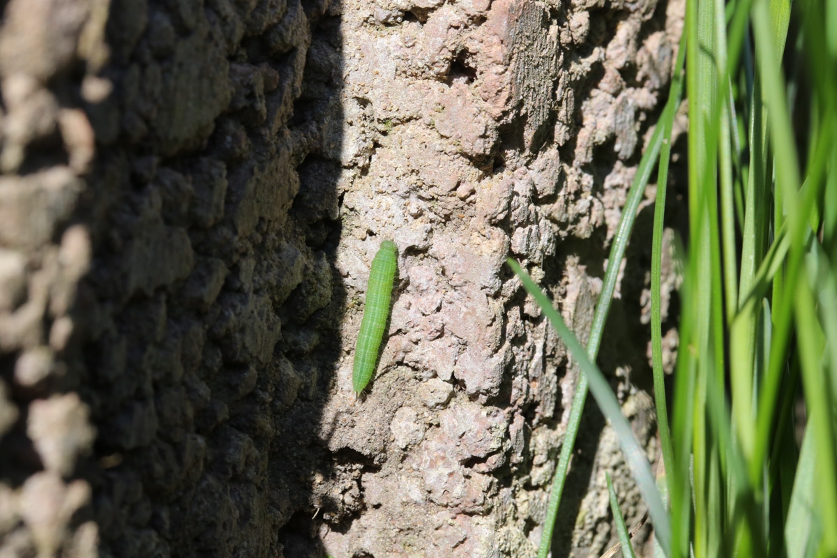 Raupe des Braunauges (Lasiommata maera) kurz vor der Häutung.